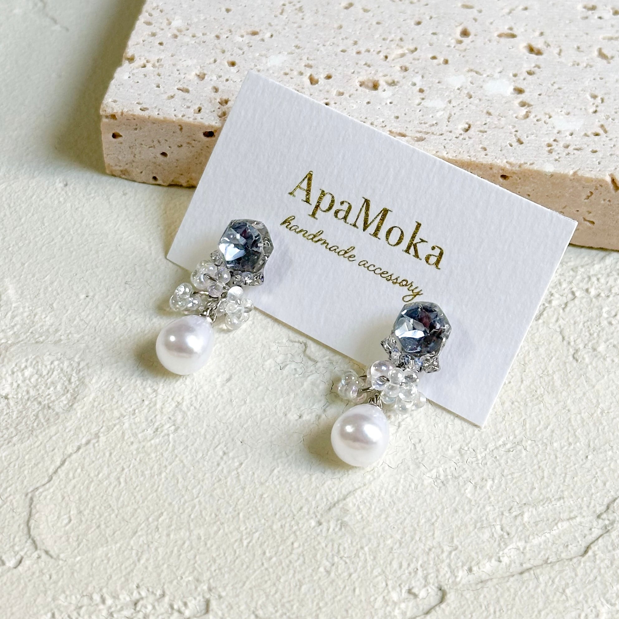 小さいながらにビジューの輝きが目を惹きつける、存在感のあるアクセサリーです。