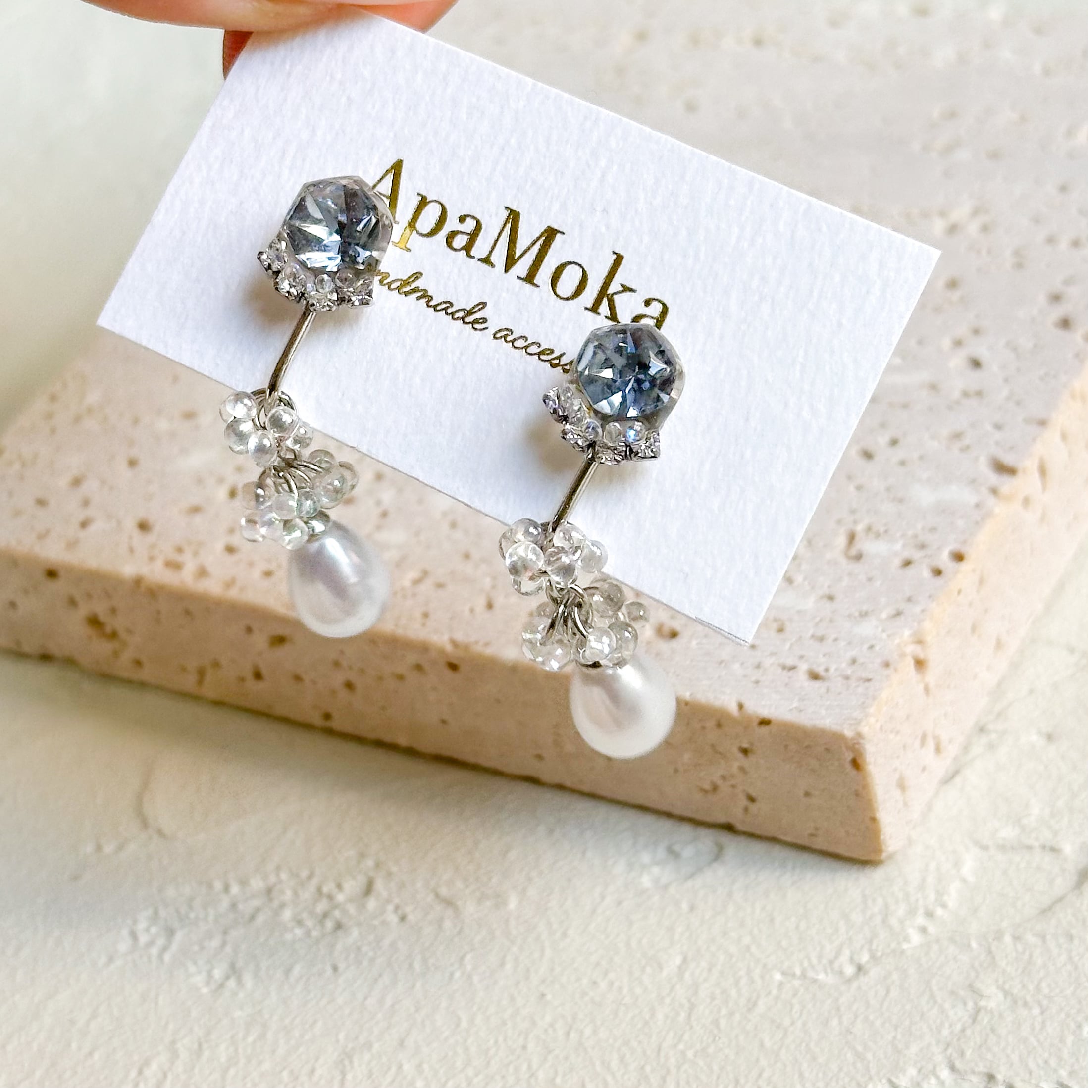 小さいながらにビジューの輝きが目を惹きつける、存在感のあるアクセサリーです。