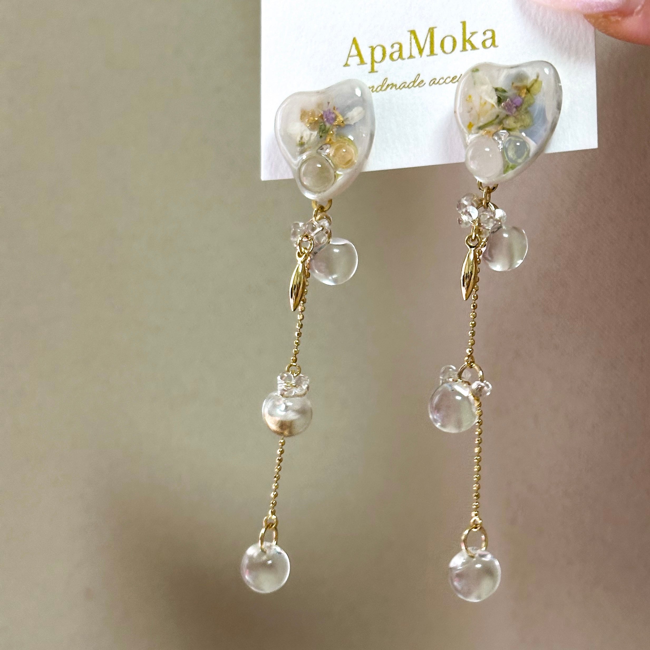 泡をイメージし、さまざまなカラーを調合しお花と混ぜ合わせました。